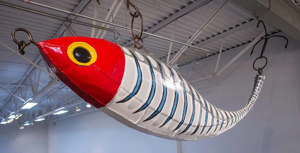 “Feder’s witty commentary on the future hangs over the viewer like the sword of Damocles: If this is the fishing lure for the new reality, do we even want to see the fish? and what of the angler?” -Randall Evans, Curator